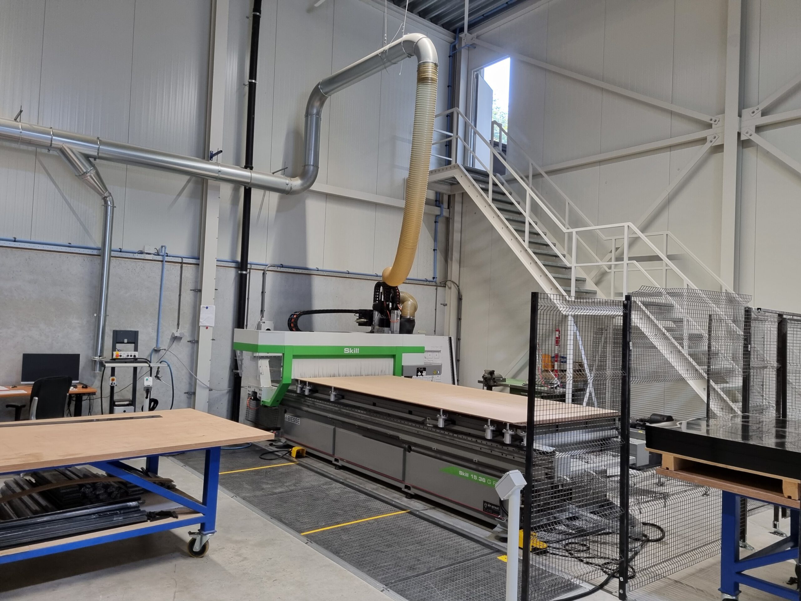 Met onze CNC-gestuurde 3-assige frees frezen wij 3D-onderdelen. De onderdelen worden vervolgens gelast of gemonteerd tot eindproduct. Dit kunnen zowel platen voor ventilatiekokers zijn, maar ook alle uitslagen voor bochten, T-stukken en overige hulpstukken met afwijkende vorm worden hierop gemaakt. Ook de 50 mm dikke platen waar wij luchtwassers en warmtewisselaars van maken worden hierop bewerkt. Dankzij een automatische gereedschapswisselaar met 12 posities kunnen er snel meerdere bewerkingen achter elkaar uitgevoerd worden.